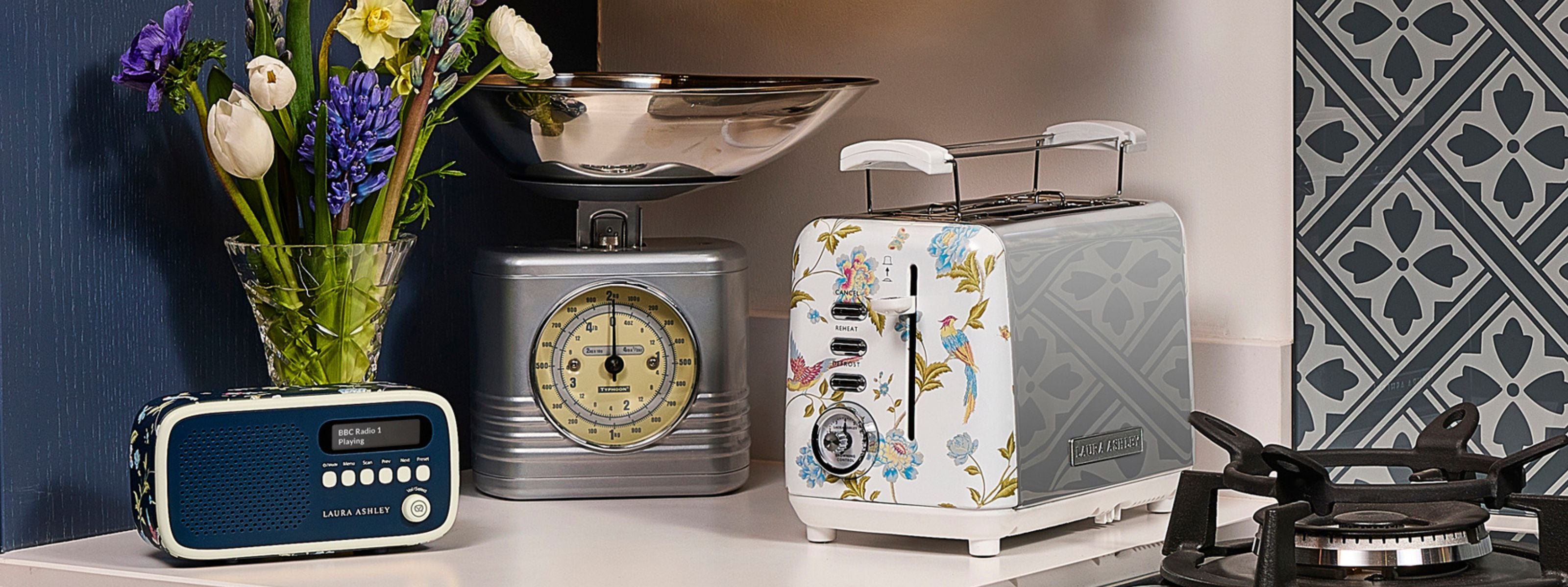 Elevate your kitchen with Laura Ashley small appliances, blending timeless style with everyday functionality. From elegantly designed tea kettles and toasters to versatile blenders, each piece reflects the brand’s heritage of quality and craftsmanship. Whether you're starting your morning routine or preparing a special meal, Laura Ashley kitchen appliances add a touch of beauty to your home, making every moment in the kitchen more inspiring.